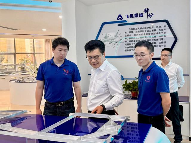 在调研过程中,葛捷向王志强一行介绍了浙江今翔航空制造有限公司自2020年10月创立以来的发展历程、特色产品,在民用航空器零部件设计和生产等许可项目,以及有色金属合金制造销售等项目上取得的成果。公司目前在航空制造领域不断创新突破,产品在国内市场获得广泛认可。